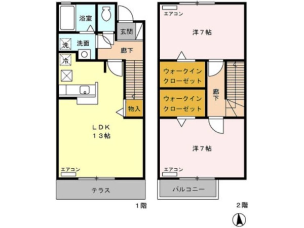 | 間取 | 2LDK (LDK:13帖・洋:7帖・洋:7帖) |