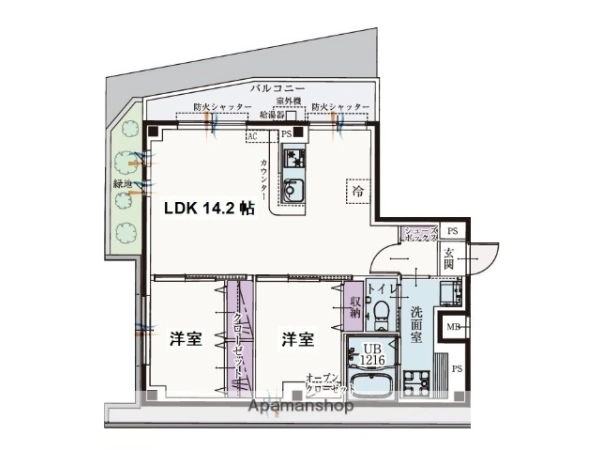 | 間取り詳細 | 2LDK (LDK:14.2帖) |