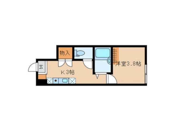 | 間取 | 1K (洋:3.8帖・K:3帖) |