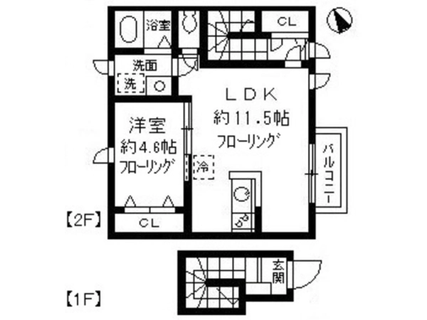 | 間取 | 1LDK (LDK:11.5帖・洋:4.6帖) |