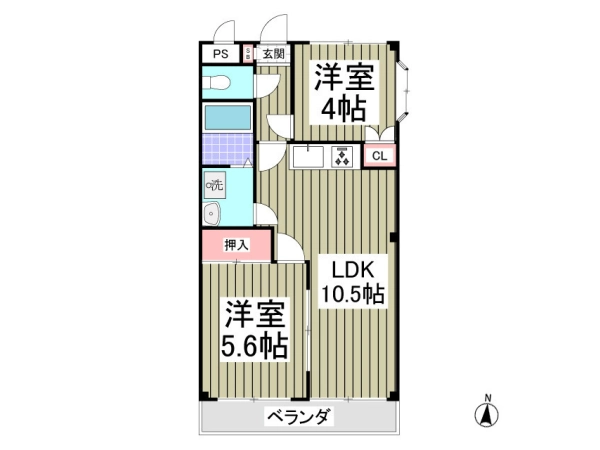 | 間取 | 2LDK (洋:5.6帖・洋:4帖・LDK:10.5帖) |
