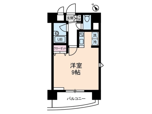 | 間取 | 1R (洋:9帖・K:2帖) |