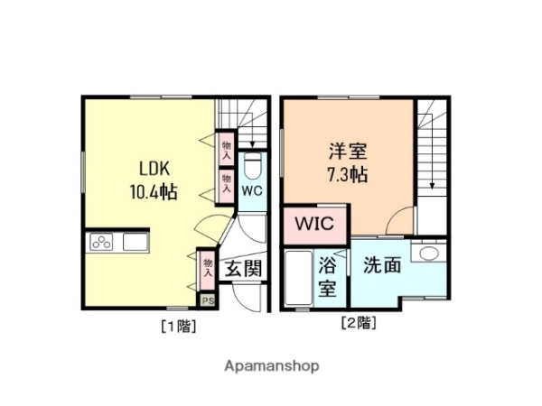 | 間取り詳細 | 1LDK (LDK:10.4帖・洋:7.3帖) |