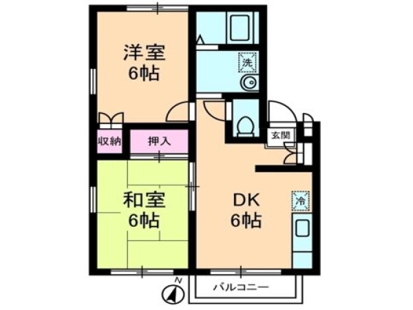 | 間取 | 2DK (DK:6帖・洋:6帖・和:6畳) |