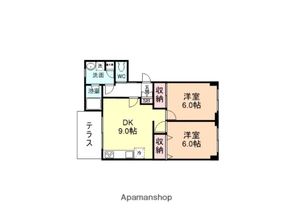 | 間取 | 2DK (DK:9帖・洋:6帖・洋:6帖) |