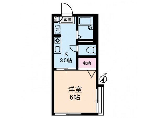 | 間取 | 1K (洋:6帖・K:3.5帖) |