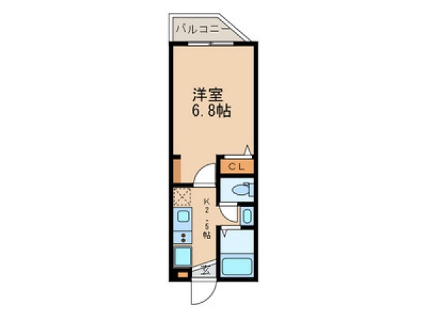 | 間取 | 1K (洋:6.8帖・K:2.5帖) |