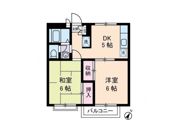 | 間取 | 2DK (DK:5帖・洋:6帖・和:6畳) |
