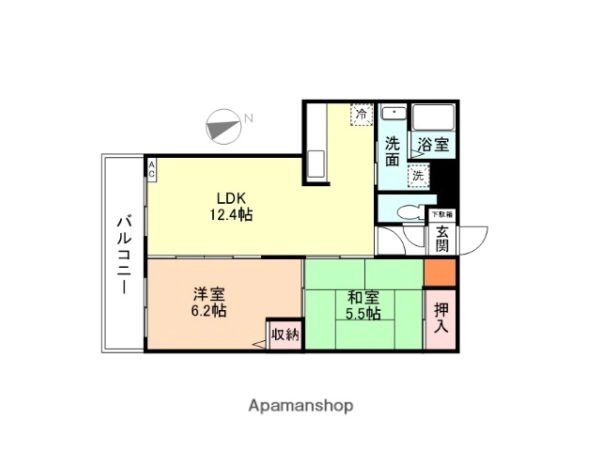 | 間取 | 2LDK (LDK:12.4帖・洋:6.2帖・和:5.5畳) |