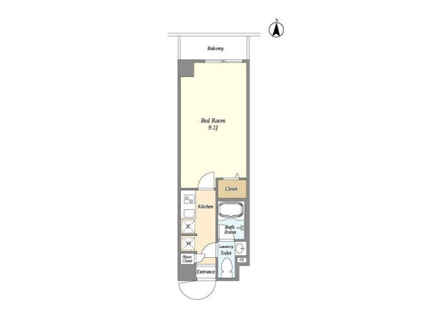 | 間取 | 1K (洋:9.1帖) |