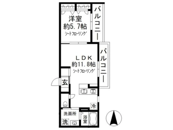 | 間取 | 1LDK (LDK:11.8帖・洋:5.7帖) |