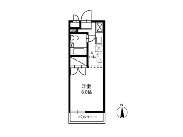 | 間取り詳細 | 1K (K:帖・洋:6帖) |