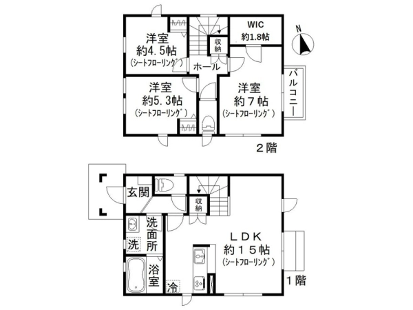 | 間取 | 3LDK (LDK:15帖・洋:4.5帖・洋:5.3帖・洋:7帖) |