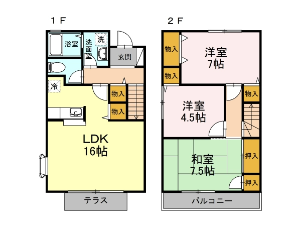 | 間取り詳細 | 3LDK (LDK:16帖・洋:7帖・洋:4.5帖・和:7.5畳) |