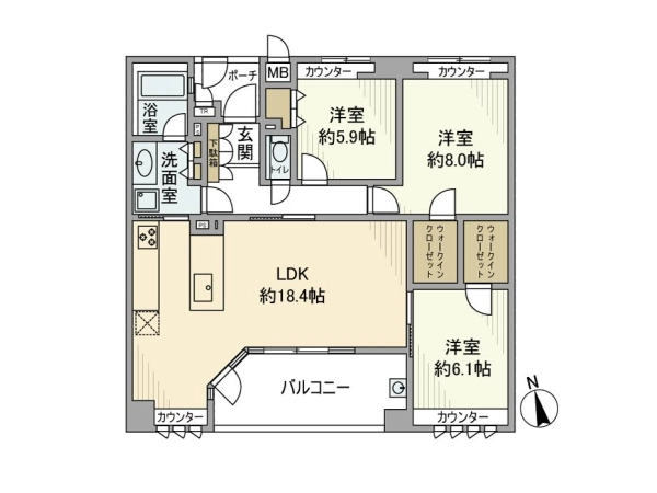 | 間取 | 3LDK (LDK:18.4帖・洋:5.9帖・洋:6.1帖・洋:8帖) |