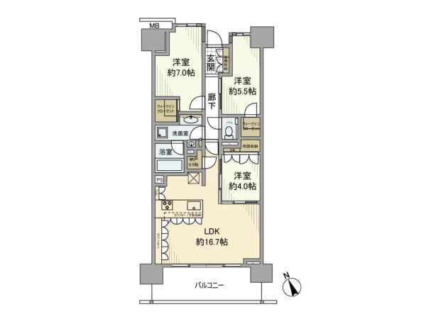 | 間取 | 3LDK (LDK:16.7帖・洋:4帖・洋:5.5帖・洋:7帖) |