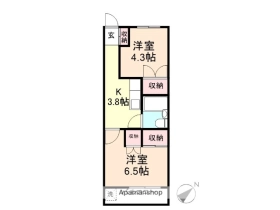 | 間取り詳細 | 2K (K:3.8帖・洋:6.5帖・洋:4.3帖) |