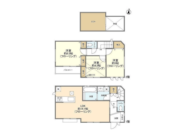 | 間取 | 3LDK (LDK:14.1帖・洋:6.5帖・洋:5帖・洋:4.2帖) |