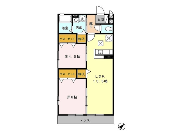 | 間取 | 2LDK (LDK:13.5帖・洋:6帖・洋:4.5帖) |