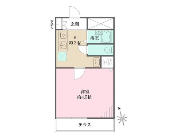 | 間取 | 1K (K:2帖・洋:4.5帖) |