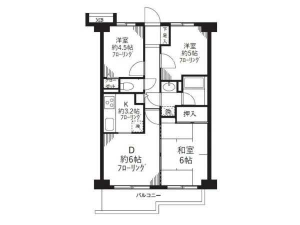 間取 3DK (K:3.2帖・D:6帖・洋:5帖・洋:4.5帖・和:6畳)