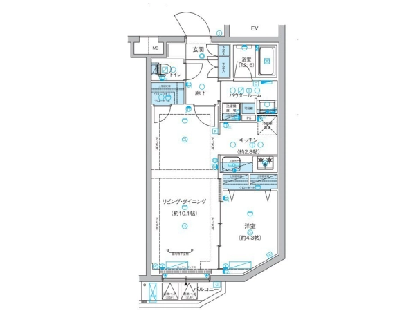 間取り詳細 1LDK (洋:4.3帖・LD:10.1帖)