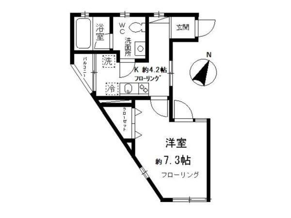 | 間取 | 1K (K:4.2帖・洋:7.3帖) |